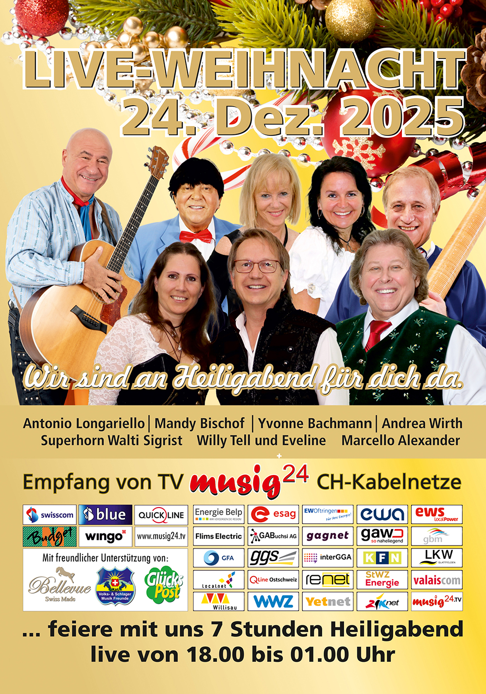 Ab 18.00 Uhr, "Heilig Abend" anrufen und mit feiern.